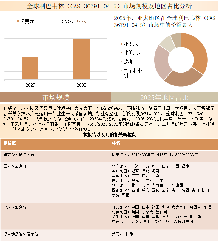 2026-2032年全球与中国利巴韦林(CAS 36791-04-5)市场调查与市场分析预测报告