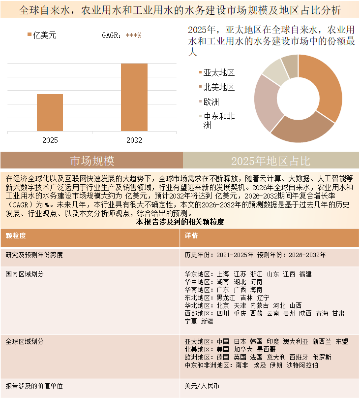 图 2025年-2032年亚太自来水,农业用水和工业用水的水务建设市场行业市场规模预测
