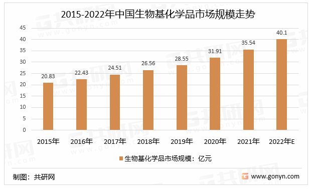 由于摆脱了对化石原料的依赖,同时避免了石油基产品制备过程的高能耗高污染,为了资源和环境的绿色、可持续发展,以可再生的生物质资源为原料,以生物转化技术制备化学品是未来发展的主要趋势。生物基化学品市场规模将持续增长,预计2022年我国生物基化学品市场规模将达到40亿元左右。