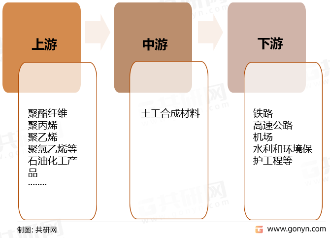 土工合成材料的产业链下游为土工合成材料应用领域,主要集中在交通、水利、电力、市政工程、建筑、航运、电力、环保等关系国计民生的基础行业。