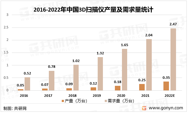 2022年中国3D扫描仪产销现状及市场规模[图]