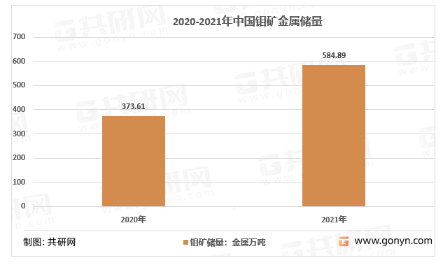 2020-2021年中国钼矿金属储量