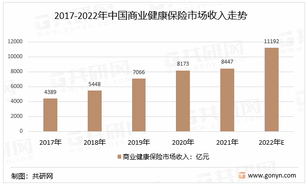 2017-2022年中国商业健康保险市场收入走势