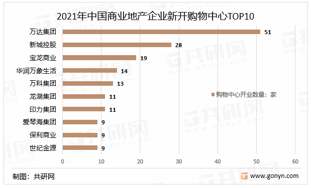 2021年中国商业地产企业新开购物中心TOP10