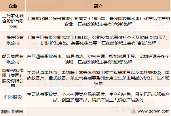 驱蚊行业主要竞争企业