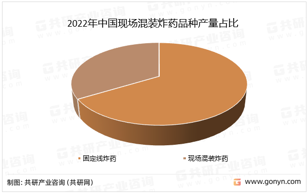 现场混装炸药(包括现场混装乳化炸药、现场混装铵油炸药和现场混装粒状铵油炸药三个品种)是“十四五”时期产品结构调整的主要方向。2022年中国现场混装炸药产量占工业炸药总产量的比例继续增加,其产量占比为34%。