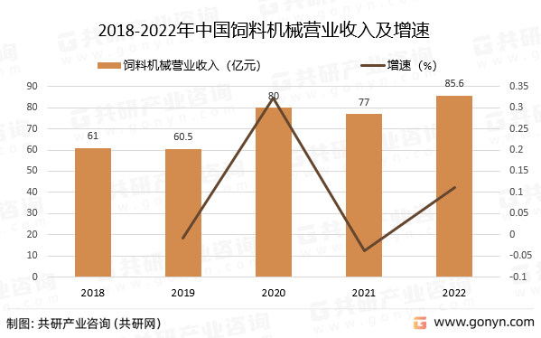 2018-2022年中国饲料机械营业收入及增速