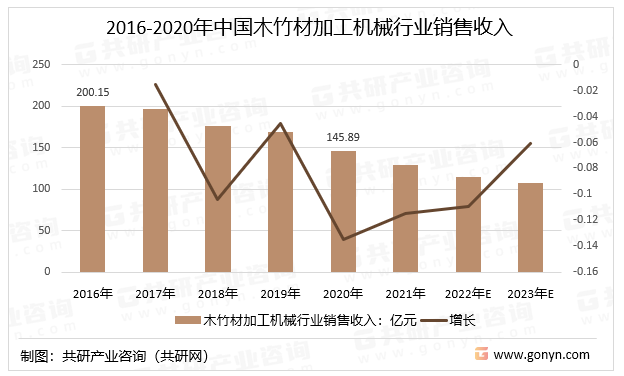 2016-2020年中国木竹材加工机械行业销售收入
