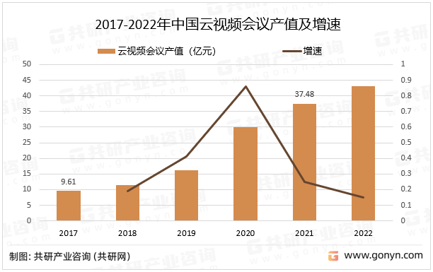 云视频会议是视频会议与云计算的完美结合,带来了最便捷的远程会议体验,我国云视频行业紧跟国外技术发展,政策成为重要的行业驱动力,其次行业需求也是重要内在驱动力之一,两者合力促进视频会议逐步发展壮大。其中2022年中国云视频会议产值同比增长15%。