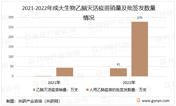 2021-2022年成大生物乙脑灭活疫苗销量及批签发数量情况