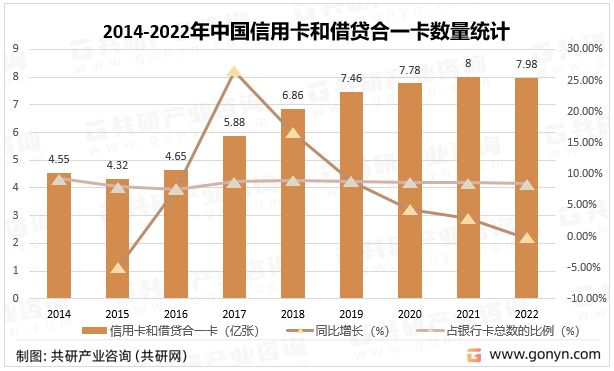 2014-2022年中国信用卡和借贷合一卡数量统计