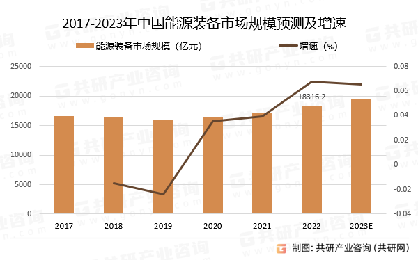 作为我国关键的高新技术装备制造业之一,能源装备行业在为能源行业发展提供重要支撑的同时,也必须适应市场的新变化,实现转型升级,达到更大的发展。2022年,我国能源装备市场规模为18316.2亿元,同比增长6.75%;预计2023年能源装备市场规模将达到19515.8亿元。