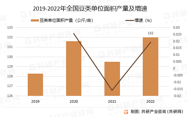 豆类作物要实行轮作才能获得高产。豆类作物适宜的前茬为禾谷类作物、薯类作物和棉花。2021年,全国豆类单位面积产量129.5公斤/亩,比2020年减少2.1公斤/亩,同比下降1.6%;2022年,全国豆类单位面积产量132公斤/亩,比2021年增加2.5公斤/亩,同比增长1.93%。