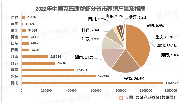 2022年中国克氏原螯虾分省市养殖产量及格局