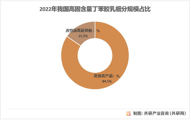 2022年我国高固含量丁苯胶乳行业市场规模1.25亿元,其中,发泡类产品需求规模1.06亿元,改性沥青及其他领域需求规模0.19亿元。