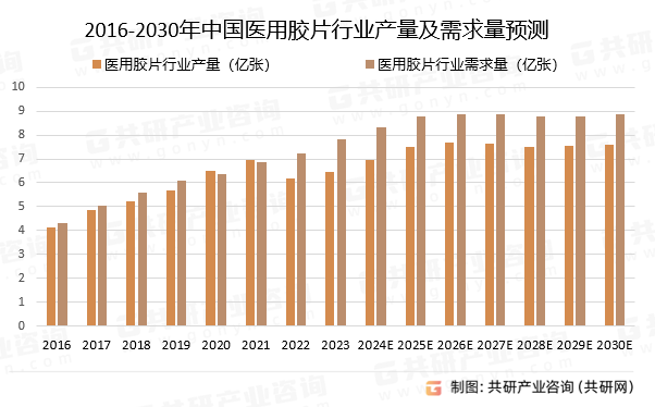 2016-2030年中国医用胶片行业市场规模预测及增速