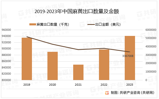 2019-2023年中国麻黄出口数量及金额
