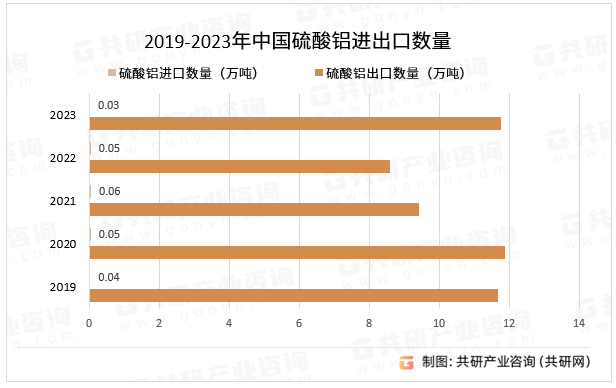 硫酸铝是一种无机化合物,为白色结晶性粉末。在造纸工业中作为松香胶、蜡乳液等胶料的沉淀剂,水处理中作絮凝剂,还可作泡沫灭火器的内留剂,制造明矾、铝白的原料,石油脱色、脱臭剂、药物的原料等,还可制造人造宝石及高级铵明矾,从我国硫酸铝进出口数量来看,出口数量较大,其中2023年中国硫酸铝出口数量为11.78万吨。