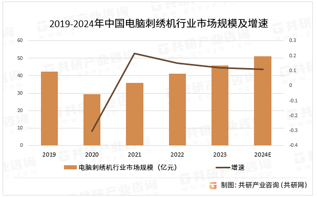 2019-2024年中国电脑刺绣机行业市场规模及增速