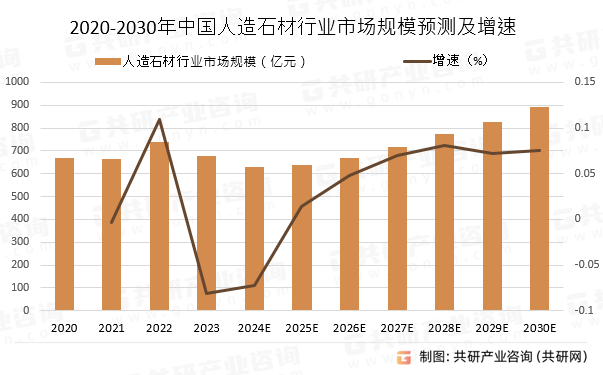 随着消费者和建筑业者对人造石材的需求不断增加,市场规模在不断扩大,这主要得益于人造石材在家居装饰、商业建筑和公共场所等领域的广泛应用。预计到2030年我国人造石材行业市场规模将达到891.2亿元。