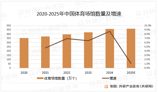 2020-2025年中国体育场馆数量及增速