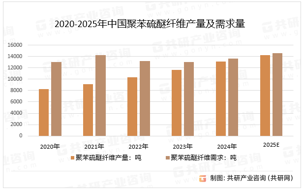 2020-2025年中国聚苯硫醚纤维产量及需求量