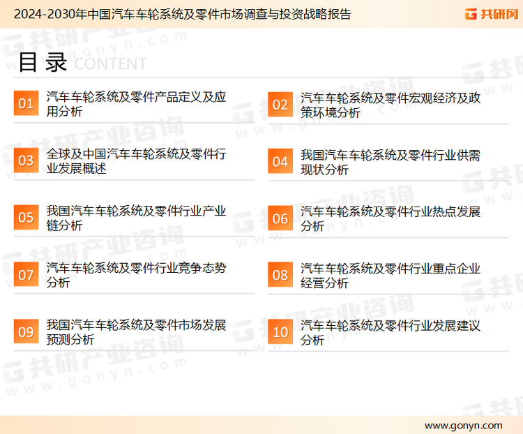为确保汽车车轮系统及零件行业数据精准性以及内容的可参考价值,共研产业研究院团队通过上市公司年报、厂家调研、经销商座谈、专家验证等多渠道开展数据采集工作,并运用共研自主建立的产业分析模型,结合市场、行业和厂商进行深度剖析,能够反映当前市场现状、热点、动态及未来趋势,使从业者能够从多种维度、多个侧面综合了解当前汽车车轮系统及零件行业的发展态势。