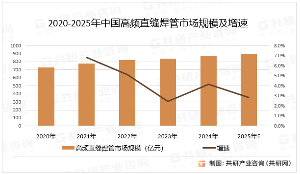 随着经济复苏和基础设施建设推进,焊接钢管市场需求将持续增加,预计保持稳定增长态势,预计2025年中国高频直缝焊管市场规模同比增长2.9%。