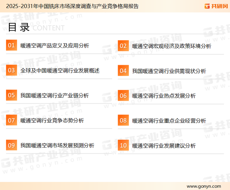 共研产业研究院通过对公开信息分析、业内资深人士和相关企业高管的深度访谈,以及分析师专业性判断和评价撰写了《2025-2031年中国铣床市场深度调查与产业竞争格局报告》。本报告为暖通空调企业决策人及投资者提供了重要参考依据。