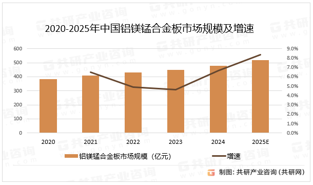 2020-2025年中国铝镁锰合金板市场规模及增速
