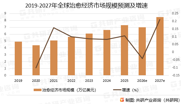 2019-2027年全球治愈经济市场规模预测及增速