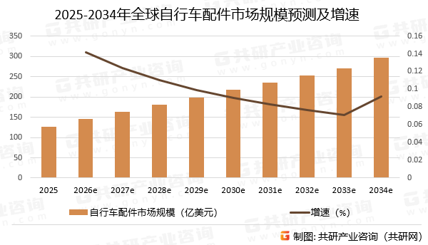 随着人们对身体健康和环保出行的关注度提高,自行车作为低碳、高效的交通工具,使用率逐年攀升。全球自行车配件市场规模持续扩张,2025年全球骑行配件市场规模约为127亿美元,预计2034年骑行配件市场规模将达到296亿美元,预测期内复合年增长率为9.8%。