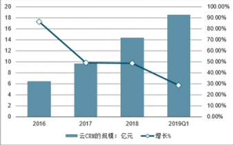 2016-2019年中国云CRM的规模及增长走势