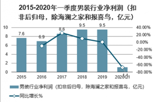 2015-2020年一季度男装行业净利润(扣非后归母,除海澜之家和报喜鸟,亿元)