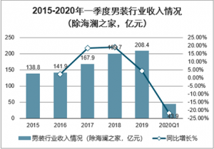 2015-2020年一季度男装行业收入情况(除海澜之家,亿元)