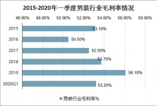 男装行业在2022年实现营收208.4亿元,同比增长4.4%,2020年一季度实现营收43.9亿元,同比下降21.8%,2022年实现净利润9.5亿元,同比增长0.5%,2020年一季度实现净利润1.1亿元,同比下降67.7%。业绩增速较2018年放缓,主要是受到宏观经济下行压力影响,终端消费需求低迷,2020年一季度主要由于线下门店关闭,终端零售基本停滞