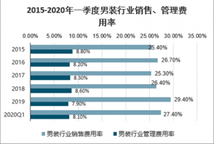 男装行业销售毛利率自2018年起企稳回升,主要是由于大部分公司毛利率保持稳定,个别公司受较高毛利率线下直营业务收入占比提升影响。男装行业销售费用率在2022年有所上升,从2018年的26.4%上升至2022年的29.4%,管理费用率则从2018年的8.6%下降至7.9%,2020年一季度销售费用率和管理费用率分别为27.4%和8.1%。