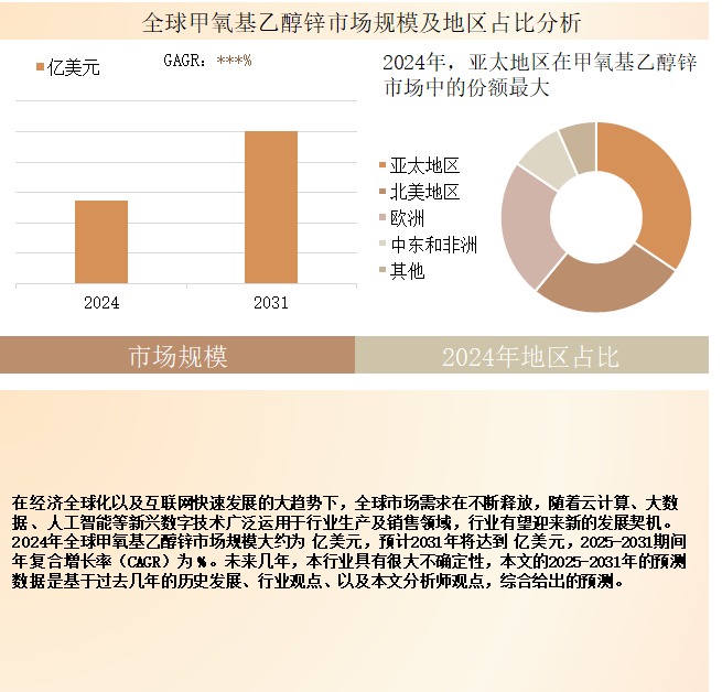 重点分析全球主要地区甲氧基乙醇锌的产能、销量、收入和增长潜力,历史数据2020-2024年,预测数据2025-2031年。