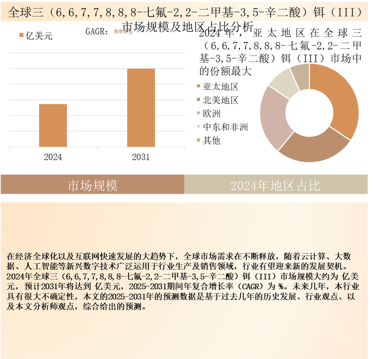 重点分析全球主要地区三(6,6,7,7,8,8,8-七氟-2,2-二甲基-3,5-辛二酸)铒(III)的产能、销量、收入和增长潜力,历史数据2020-2024年,预测数据2025-2031年。