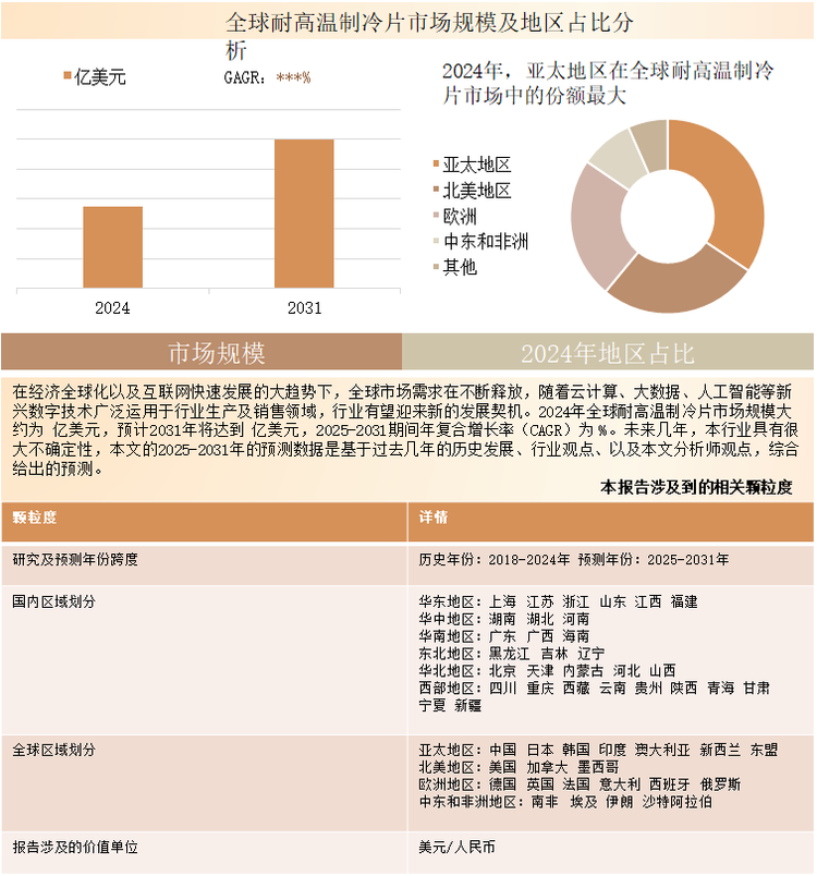 重点分析全球主要地区耐高温制冷片的产能、销量、收入和增长潜力,历史数据2020-2024年,预测数据2025-2031年。