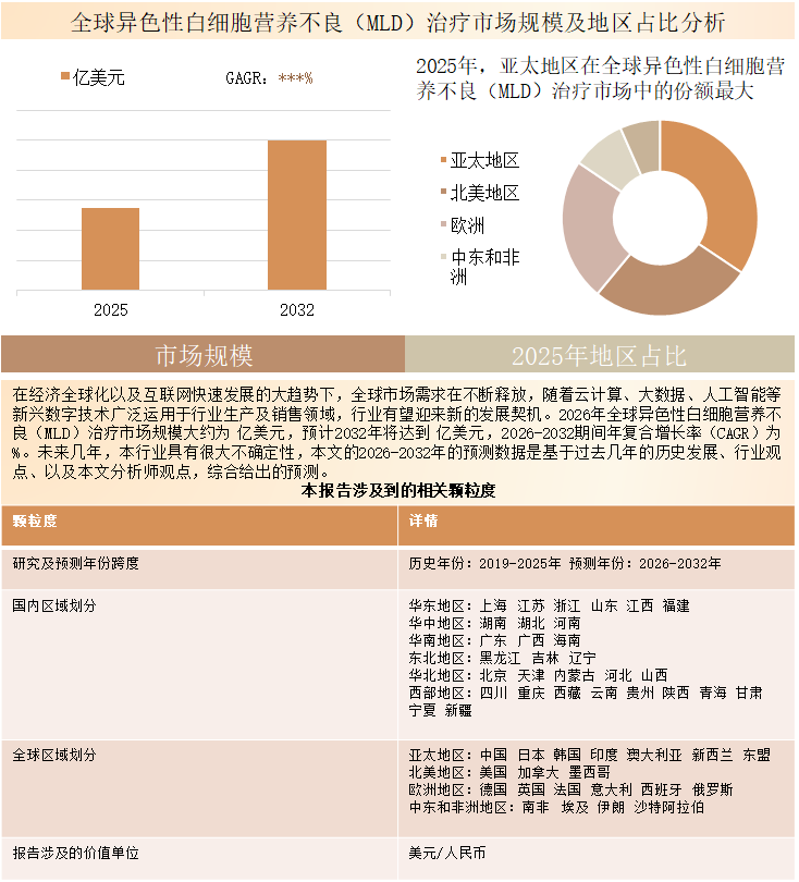 2026-2032年全球与中国异色性白细胞营养不良(MLD)治疗行业深度调查与投资前景分析报告